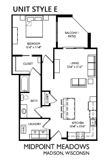 Our One-Bedroom (E) apartment homes are bright and spacious, featuring large walk-in closets, granite countertops, stainless steel appliances, in-unit laundry, underground parking, additional storage, and a private patio or balcony.